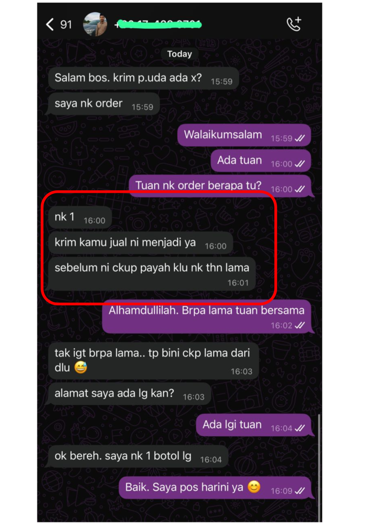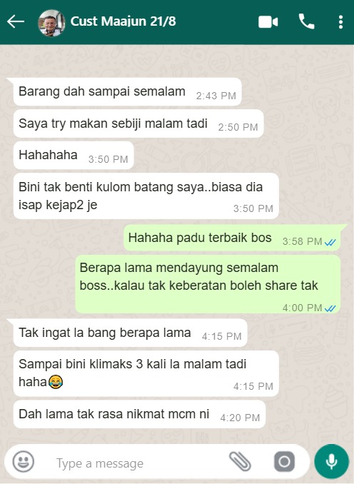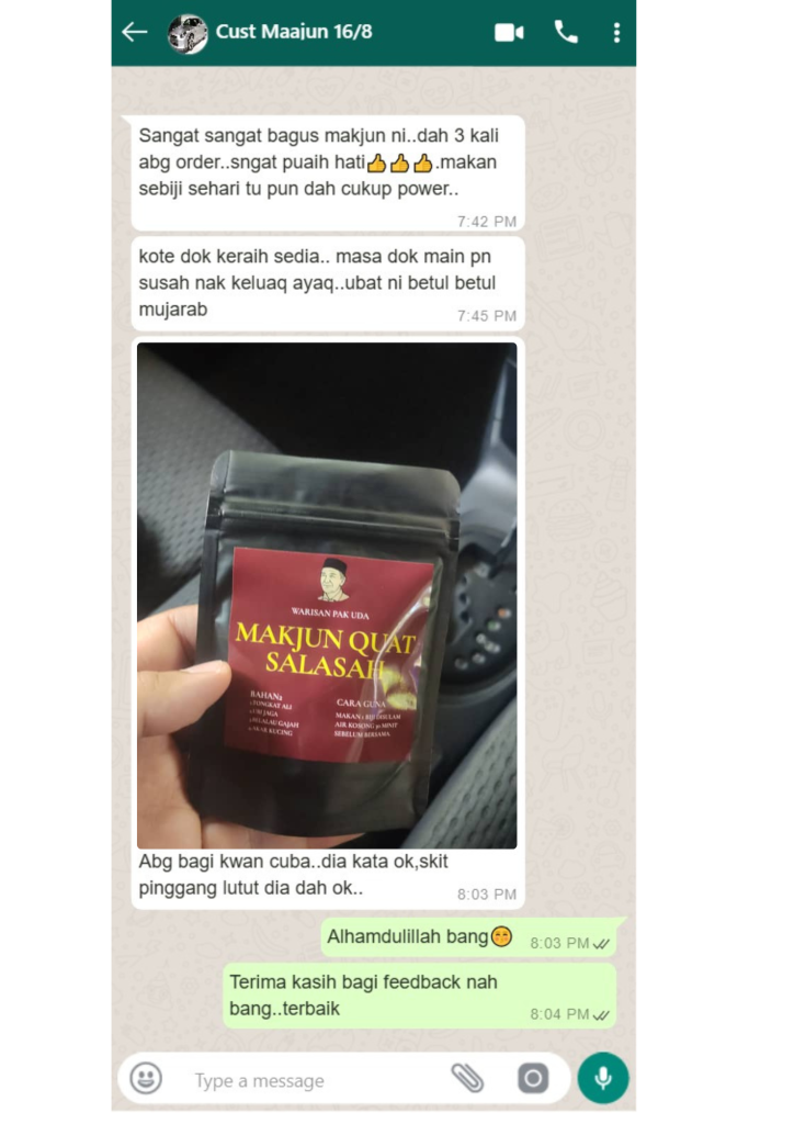 *PENAFIAN: Keberkesanan produk ini bergantung kepada kesesuaian individu. Setiap hasil dari penggunaan adalah berbeza bagi setiap individu. Produk ini akan memberi kesan terbaik sekiranya pengguna mengamalkan dengan cara betul berdasarkan banyak testimoni yang diperolehi. Kita berikhtiar, tuhan yang menyembuhkan.